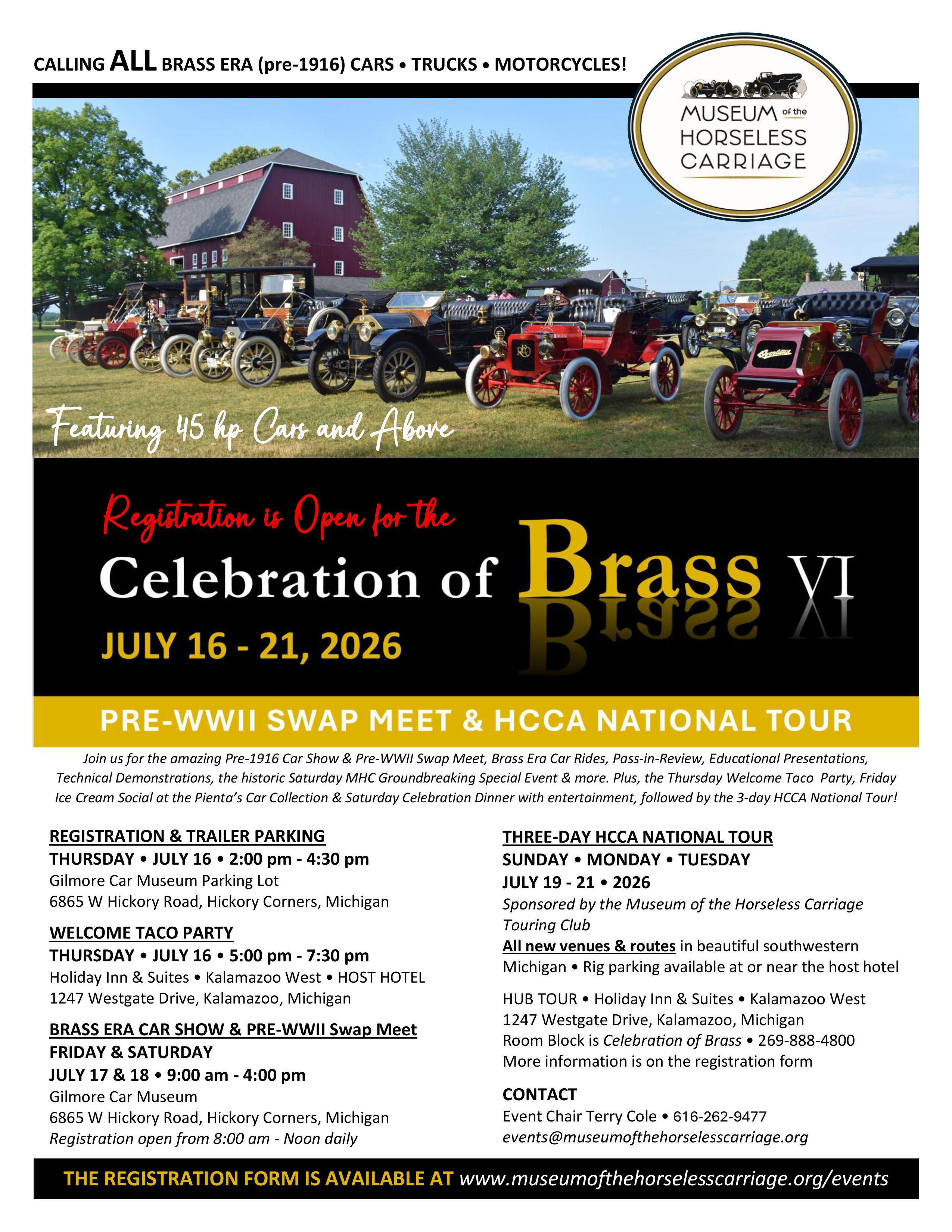 The combined Registration Form for the COV VI, Pre-WWII Swap Meet & HCCA National Tour is on the MHC website at https://www.museumofthehorselesscarriage.org/events