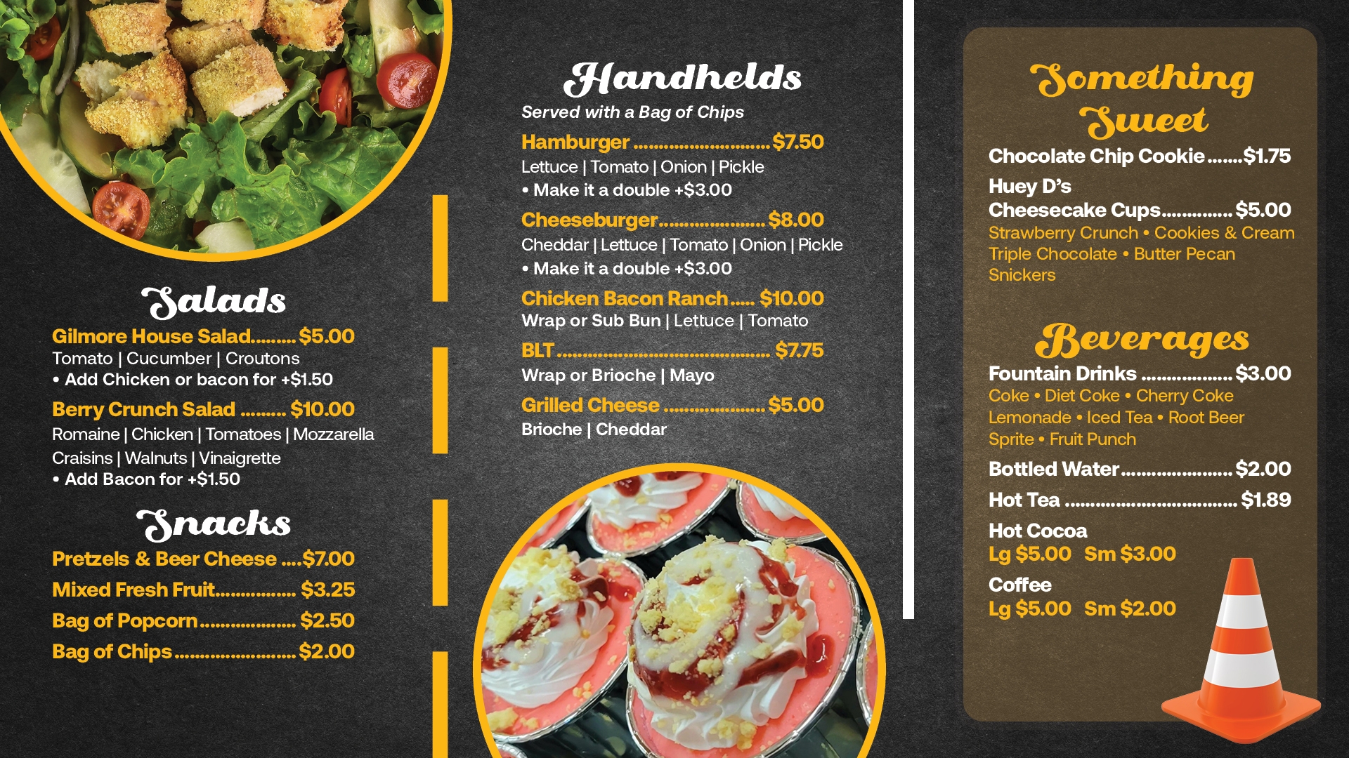 Don’t stall out. Refuel with a classic bottle of Coke as you step back in time in our authentic 1941 Diner. You’ll find amazing Chicago and Coney-style hot dogs, soups and sandwiches, Blue Plate specials, and typical diner fare from a bygone era. Make sure you leave room for a slice of decadent homemade pie or a cone of rich, creamy old-fashioned frozen custard!